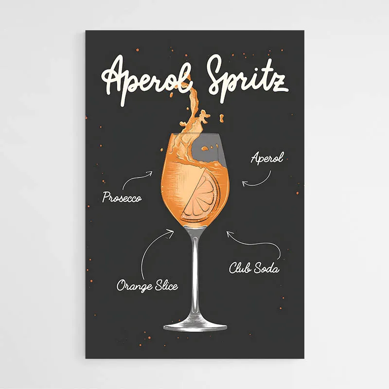 Affiche Aperol Spritz noire, une recette graphique et élégante