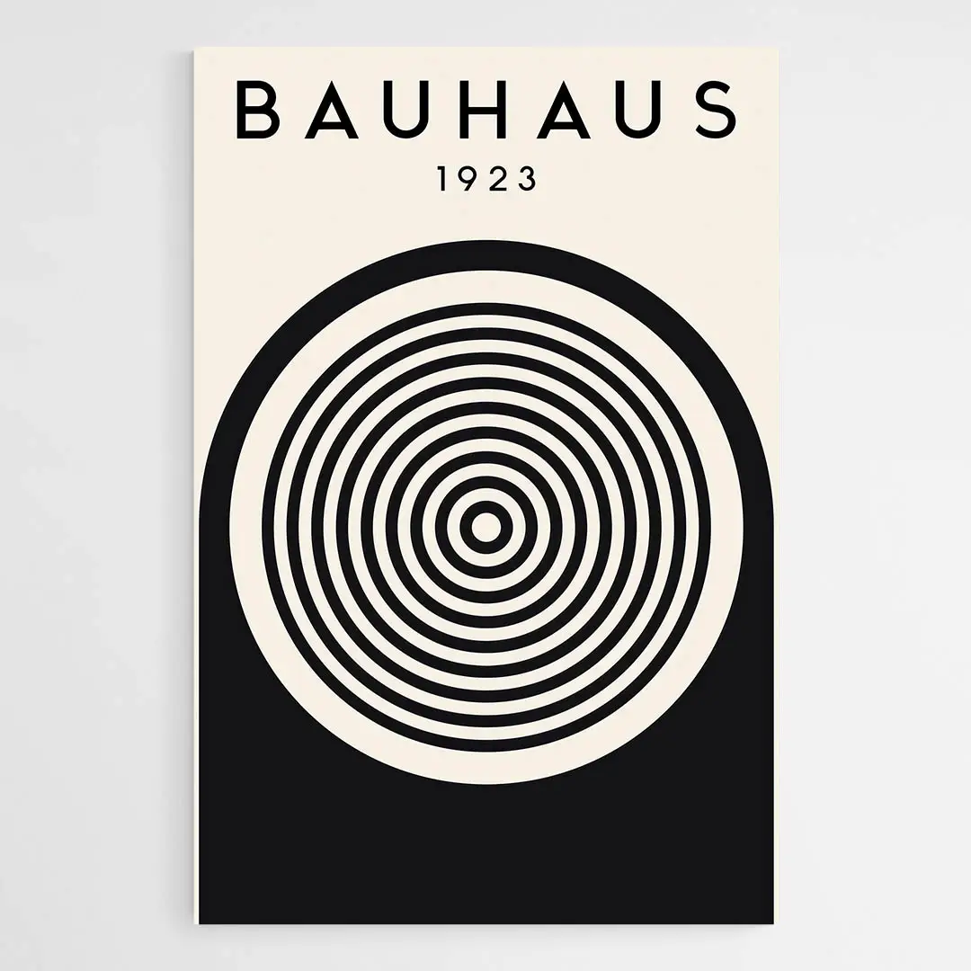 Affiche Bauhaus 1923 blanc et noir, graphisme pur et tranchant