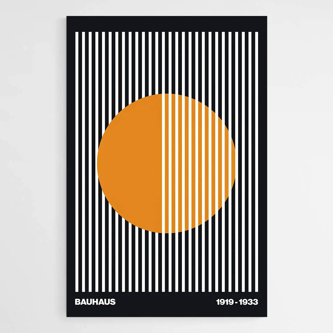 Affiche Bauhaus orange et noire, un graphisme net et percutant
