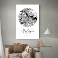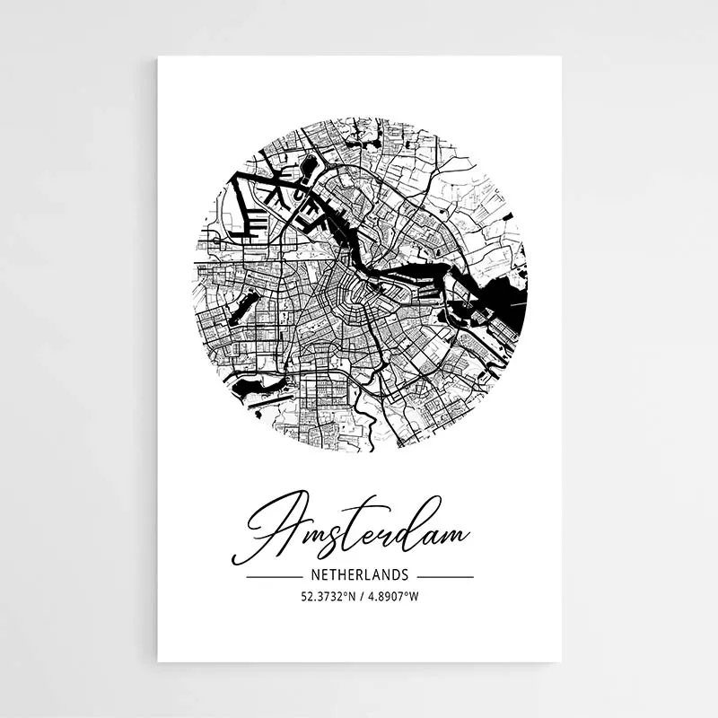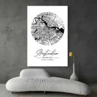 Accrochez-la au-dessus d'un bureau, dans une entrée ou dans un salon. Sur un mur blanc les couleurs ressortent, sur un mur gris elles prennent une autre chaleur. Encadrez en bois clair ou en métal noir selon l'ambiance. Complétez un mur urbain avec nos tableaux carte du monde ou nos tableaux ville.