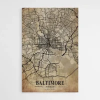 Cette Affiche Carte Vintage Bali Indonesia montre le contour de l’île de Bali et plusieurs petites îles autour. Le fond a un beige parcheminé, avec des taches et des nuances qui donnent un aspect vieilli. On remarque des traits de côte dessinés en brun, des noms de lieux imprimés en lettres capitales et une rose des vents décorative qui apporte du caractère. Le rendu reste clair, net et chaleureux, simple et très lisible.