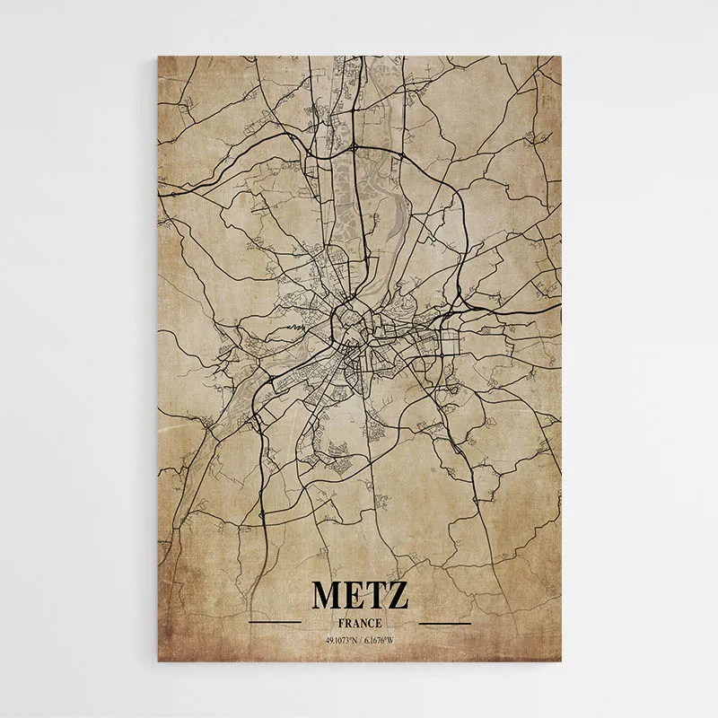 Affiche Carte Vintage Metz France, une carte au charme ancien