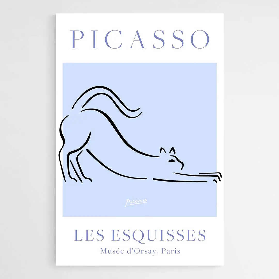 Affiche chat Picasso bleue, un portrait graphique et singulier