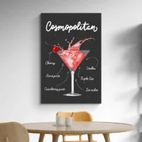 Accrochez cette affiche dans une cuisine, un coin bar ou une salle à manger. Sur un mur clair, le rose ressort. Sur un mur foncé, le contraste devient plus marqué. Pour compléter, découvrez nos affiches cocktails ou nos tableaux pop art.
