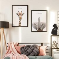 Pour l’associer, on choisit un mur clair et des matières naturelles comme le bois clair ou le lin. On peut installer cette affiche près d’une lampe chaude, à côté d’une plante verte, afin de rappeler l’univers animalier. Elle se marie bien avec des tableaux animaux ou des cadres minimalistes dans des tons similaires.