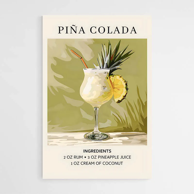 Affiche Ingredients Pina Colada, un visuel clair et tropical