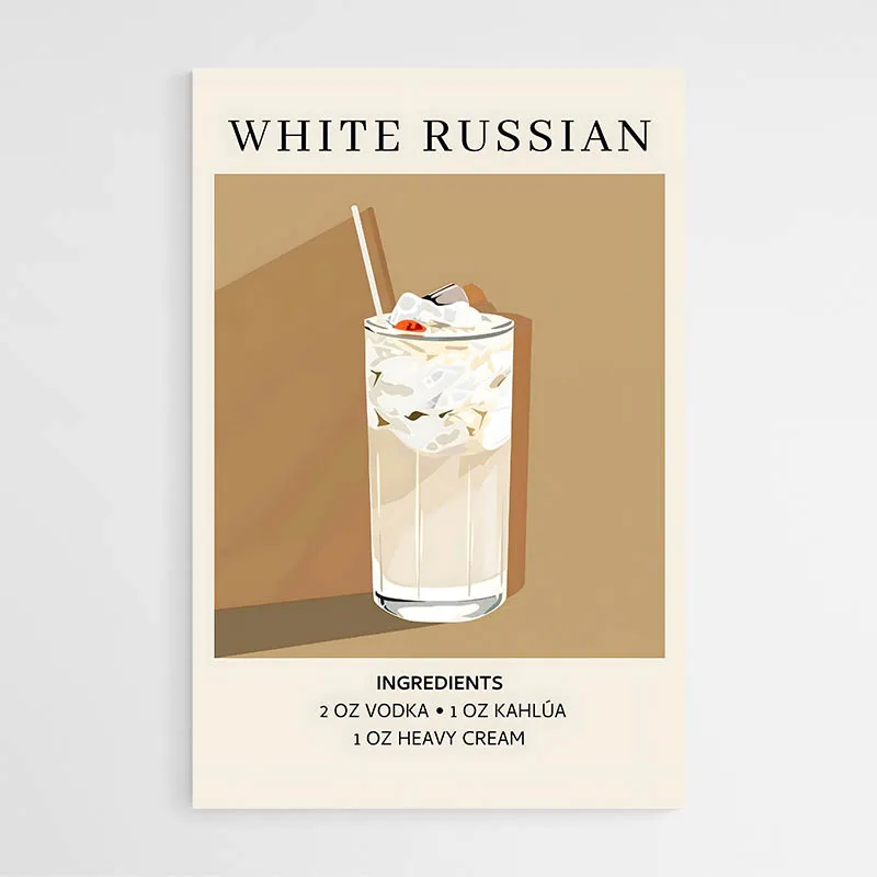 Affiche Ingredients White Russian, un visuel épuré et gourmand