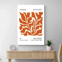Affiche Matisse Feuilles Orange offre une sensation à la fois vive et apaisante. On ressent l’énergie des tons orange et la douceur du fond clair. Cette affiche plaira aux amateurs de compositions graphiques et à ceux qui aiment une décoration sobre mais marquante. Il crée une ambiance chaleureuse, chaleureuse et tranquille.