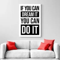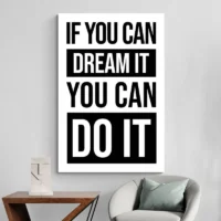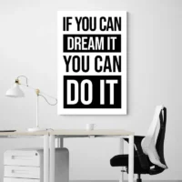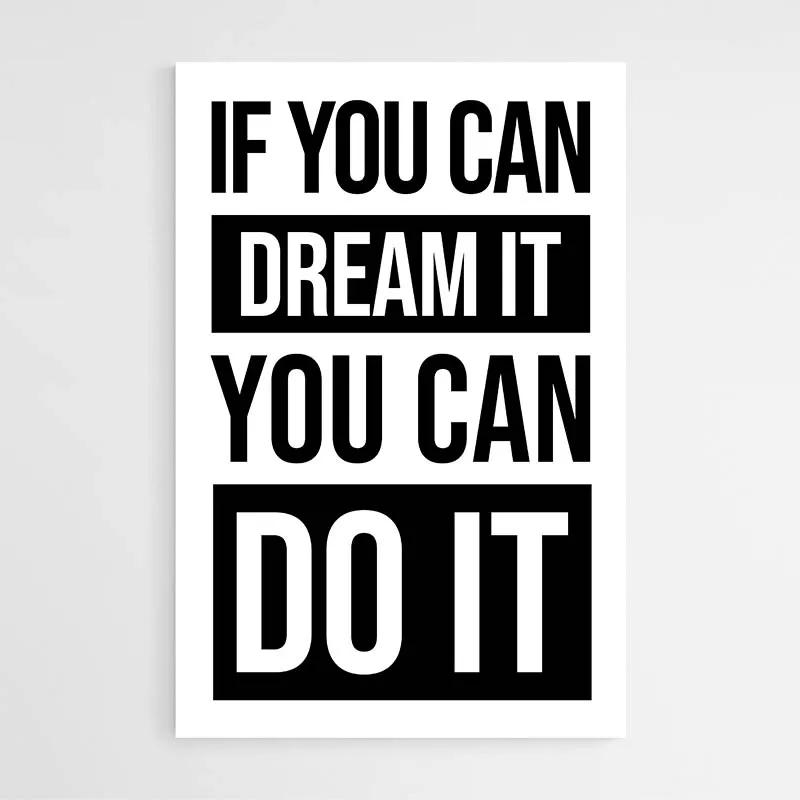 Cette Affiche Motivation - You Can Do It mise sur l’évidence. Le texte YOU CAN DO IT en majuscules occupe le centre. Les mots s’empilent sur trois lignes, le lettrage paraît volontaire et lisible. L’ensemble reste net, épuré, sans ornements inutiles. Le style reste direct, sans fioritures.