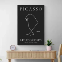 Sur un mur clair, les lignes sautent aux yeux. On le place au-dessus d'un meuble sobre, près d'une plante verte ou d'un meuble en bois. Il fonctionne bien seul ou en groupe. Pour compléter, on peut regarder nos tableaux Picasso ou nos tableaux minimalistes.