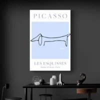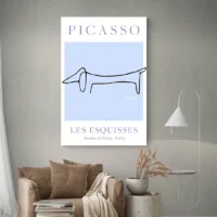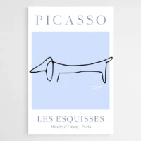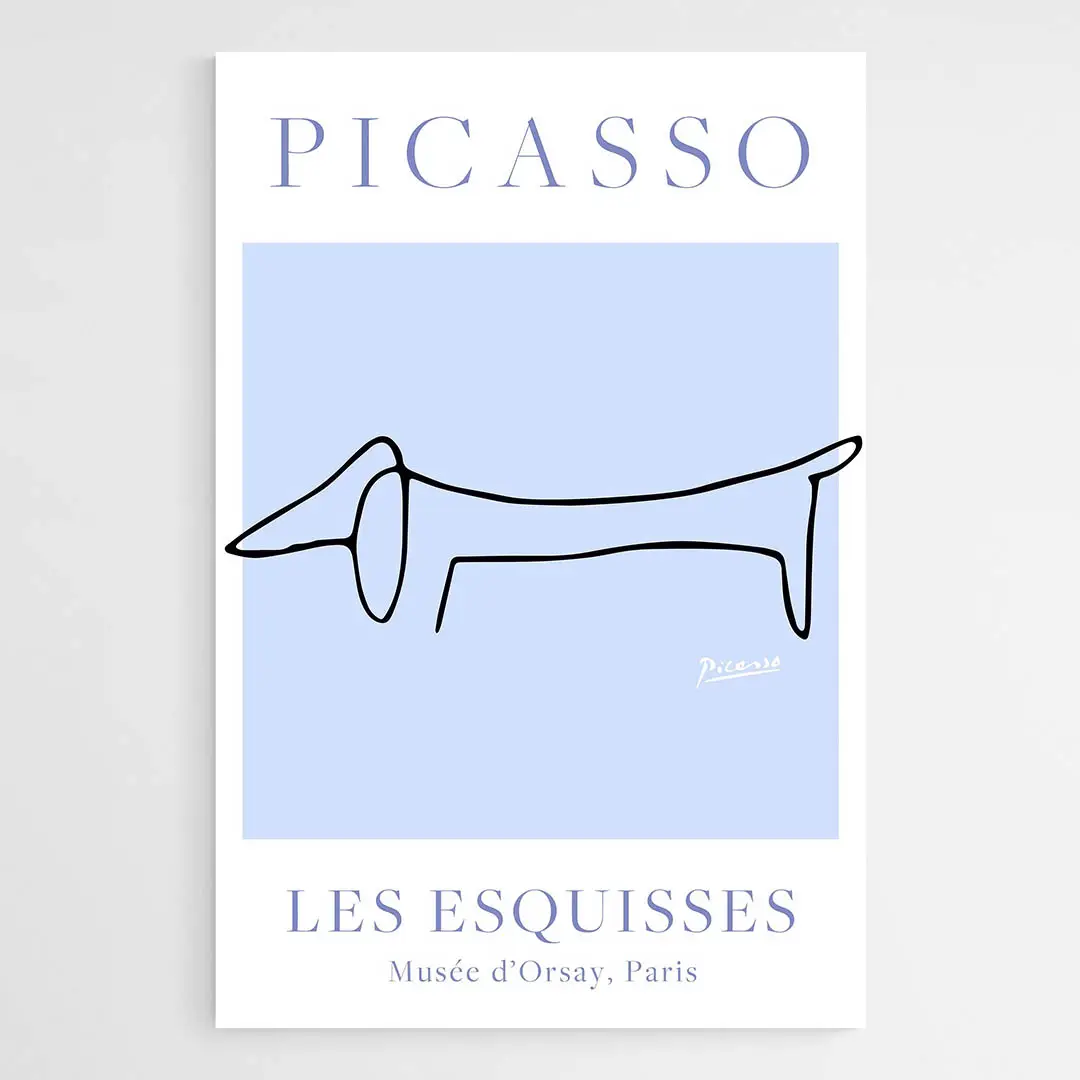 Accrochez cette affiche sur un mur blanc ou beige pour que les bleus ressortent. Elle fonctionne bien au-dessus d'un canapé, dans une entrée ou un bureau. On peut l'associer à d'autres pièces graphiques ou à du mobilier en bois clair. Découvrez aussi nos sélections de tableaux chiens et de tableaux Picasso.