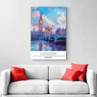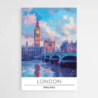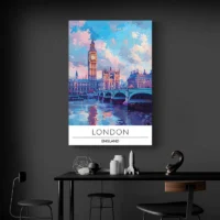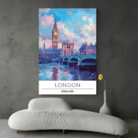 Le style reste graphique et épuré, presque photographique, et il évoque la promenade urbaine, la curiosité et la mémoire d'un voyage. On l'imagine plaire aux personnes qui aiment Londres, aux collectionneurs d'affiches de voyage, ou à ceux qui cherchent une pièce sobre mais reconnaissable. On ressent une impression calme et un peu nostalgique, simple et efficace.