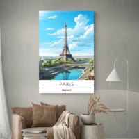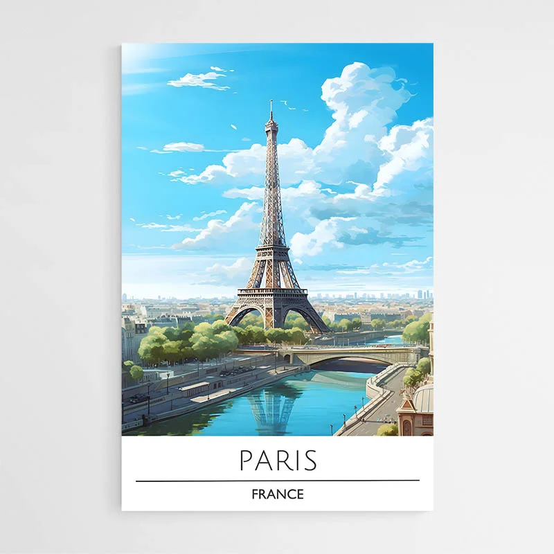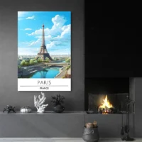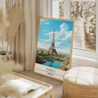 On sent tout de suite une atmosphère de voyage et de souvenir. Cette affiche plaira aux amoureux de Paris, aux voyageurs et à ceux qui cherchent une déco sobre mais marquante. L'image donne une sensation calme, légèrement nostalgique, douce et claire. On revient souvent vers ce genre d'affiche quand on veut une touche parisienne sans en faire trop.