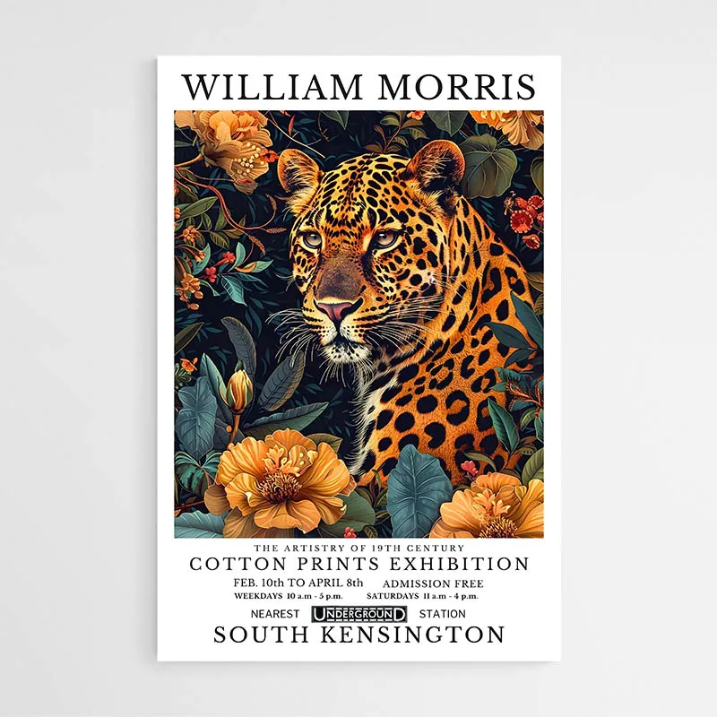 Sur un mur clair, les couleurs ressortent bien. Avec un cadre en bois ou métal patiné, l’affiche tient sa place. Ajoutez une plante verte à côté pour prolonger le feuillage. Pour compléter le mur, découvrez nos autres pièces dans la collection affiche William Morris ou explorez nos tableaux d’animaux.