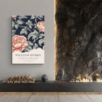 Sur un mur crème ou beige, les verts et les roses ressortent. Associez à des cadres en bois foncé ou à des coussins unis pour laisser respirer le motif. Pensez à l'associer à des meubles en bois clair ou à des textures naturelles pour une ambiance accueillante. Découvrez aussi nos affiches William Morris ou nos tableaux fleurs.