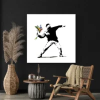 Accroché sur un mur clair, le rouge ressort immédiatement. Sur un mur foncé, le noir et le blanc prennent plus de présence. On peut le laisser seul comme point central ou l'entourer de cadres sobres. Découvrez aussi nos art urbain ou nos tableaux noir et blanc.