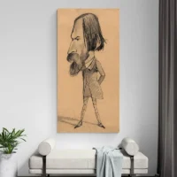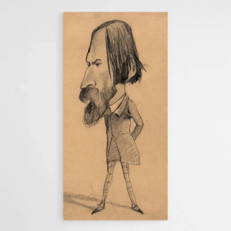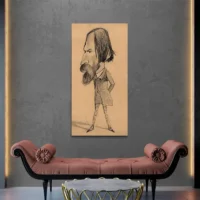 Le rendu caricatural joue sur l'exagération des traits, sur les contrastes du noir et blanc et sur la rapidité du coup de crayon. On ressent une pointe d'ironie, un côté piquant. Cette affiche convient à qui aime l'art graphique, les portraits anciens, les amateurs d'artistes du XIXe siècle.