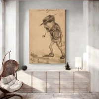 La composition mêle humour et peinture, avec un rendu proche de l'aquarelle et de l'esquisse. Ce tableau plaira à qui aime les portraits qui racontent une personnalité, aux amateurs d'images graphiques et aux personnes qui cherchent une pièce expressive pour un salon ou un bureau. Il crée une atmosphère douce et enlevée, à la fois légère et affirmée.