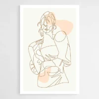 On ressent une douceur tranquille. Les lignes fines et le contraste noir sur tons beiges créent une atmosphère calme. La pose douce et le regard fermé renforcent ce sentiment de sérénité. Cette affiche séduira qui aime la déco épurée, le portrait graphique et les ambiances sobres. Elle convient pour un salon, une chambre ou un coin bureau, selon l'effet recherché.