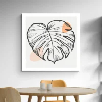 Sur un mur blanc ou beige, la feuille ressort et structure l’espace. Avec des meubles en bois clair ou des textiles naturels, l’ensemble devient cohérent. Pour compléter, on peut découvrir nos tableaux minimalistes ou nos pièces autour de la nature via tableaux nature.