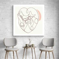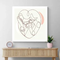 On sent tout de suite une atmosphère calme et tendre. Ce tableau parle aux personnes qui aiment l’art minimal, aux amoureux des lignes pures et des compositions discrètes. L’effet recherché vise la sérénité, la proximité, un côté délicat et contemporain. Il peut toucher aussi bien une chambre qu’un couloir ou un coin lecture.