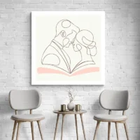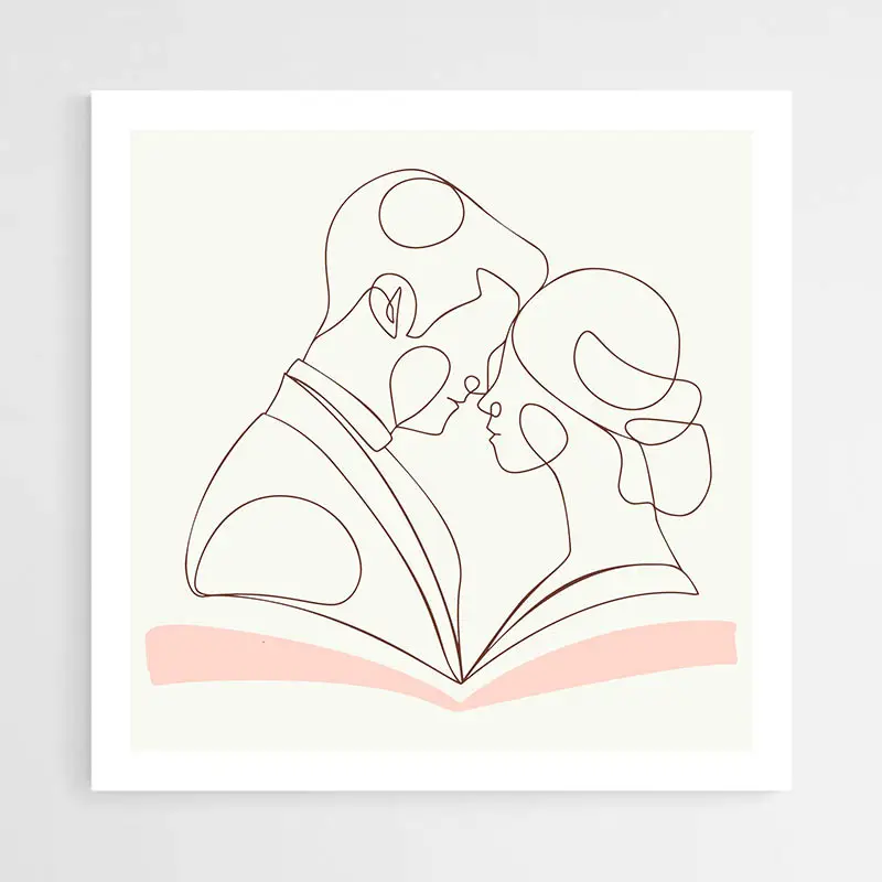 On ressent une douceur immédiate. Les lignes minimalistes apportent une élégance discrète. Ce tableau séduira ceux qui préfèrent une déco légère, contemporaine et apaisée. Il convient aussi pour une chambre, une entrée, un coin lecture. On y lit de la proximité, de la tendresse, sans ajout superflu. Il parle aussi aux amateurs d’art minimaliste et aux couples qui cherchent une touche discrète.