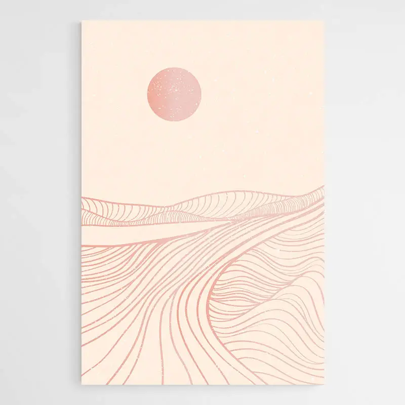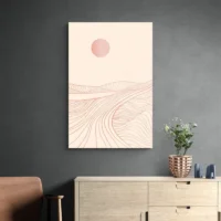 On mise sur la sobriété. On voit que ce visuel convient à ceux qui aiment les lignes pures, la décoration minimaliste et les ambiances douces. On ressent une sensation de calme, de légèreté, presque méditative. La pièce plaira aux amateurs d’art épuré et aux personnes qui cherchent une toile facile à vivre.