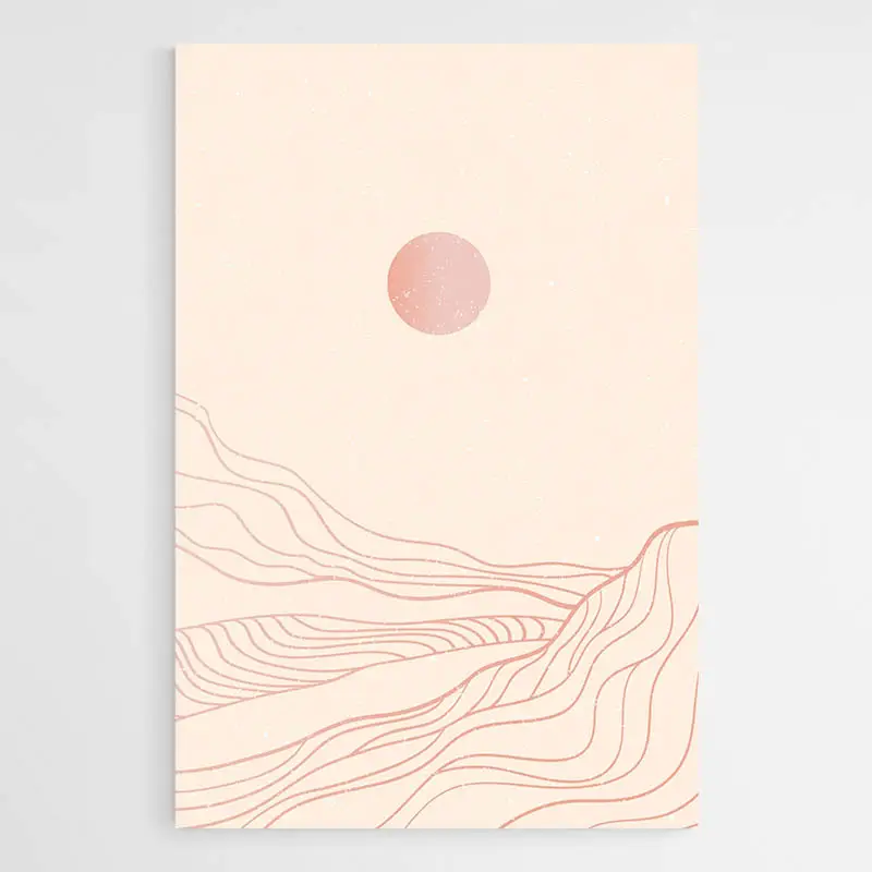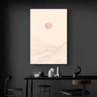 On ressent tout de suite une atmosphère sereine et lumineuse. Le format épuré met l’accent sur la forme, la courbe et la couleur. Cette affiche séduira ceux qui aiment les motifs graphiques sobres, les ambiances naturelles et les intérieurs baignés de lumière. Il invite à la détente et apporte de la chaleur sans surcharge.