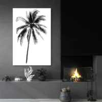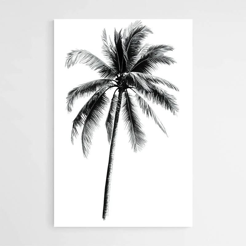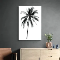 On remarque le contraste marqué entre le trait sombre et le fond doux, la finesse du trait qui dessine le tronc, et les feuilles longues et courbées qui forment un motif régulier. Ce tableau séduira la personne qui aime les images simples, l'esthétique sobre et les ambiances paisibles. Il crée une atmosphère légère, presque méditative, parfaite pour ralentir le rythme d'une pièce. On sent presque l'air chaud du bord de mer, une impression d'évasion.