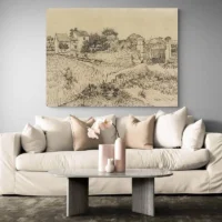Cette affiche fonctionne très bien sur un mur clair, avec des cadres en bois ou des textiles écrus. On peut l'accompagner de plantes vertes pour prolonger le paysage. Pour compléter l'ensemble, explorez nos tableaux Van Gogh ou nos tableaux paysage.