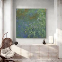 Accrochez cette toile sur un mur clair pour que les violets ressortent, ou sur un mur beige pour une atmosphère douce. Associez-la à des éléments en bois clair, un vase simple et des textiles naturels. Découvrez aussi nos sélections fleurs ou la rubrique œuvres de Monet.