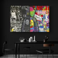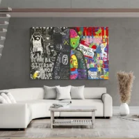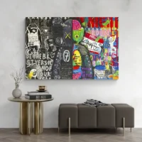 Accrochez cette affiche au-dessus d’un canapé clair ou dans une entrée pour qu’elle devienne point focal. Pour une ambiance cohérente, ajoutez des accessoires noirs, des cadres simples et des textiles tons neutres. Pour compléter un mur, découvrez nos références en tableau pop art et en tableau street art.