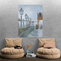 Accrochez ce tableau sur un mur clair pour que les bleus et les rouges ressortent. Dans une entrée ou un salon il devient point focal. Pour prolonger l'univers, regardez nos tableaux Van Gogh ou nos tableaux Paris.