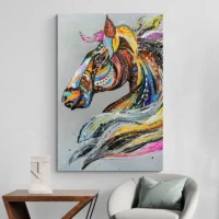 Peinture Cheval Multicolore, un portrait vivant et coloré