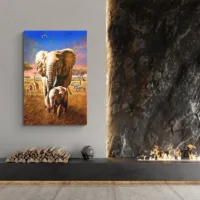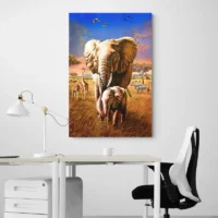 On ressent une atmosphère calme, presque méditative. Le sujet plaira aux amoureux des animaux, à qui apprécient la nature et les scènes d’Afrique. Le rendu, réaliste et sensible, évoque la lenteur d’une balade sous le soleil couchant. On sourit, on respire, on se sent apaisé. Il crée une présence forte sans écraser l’espace.