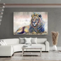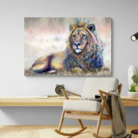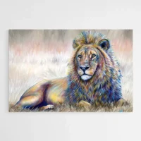 Peinture Lion Couché, une présence qui attire le regard