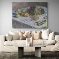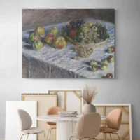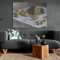 On ressent une atmosphère douce, presque intime. Pommes et raisins - Monet fonctionne pour qui aime les natures mortes, les couleurs chaudes et les gestes picturaux. La toile évoque la chaleur d’une cuisine ou d’un coin repas posé, tranquille. Le rendu reste vivant, direct, simple et élégant, et il parle aux amateurs de peinture traditionnelle.