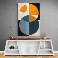 Accroché au-dessus d'un canapé en bois clair ou d'un bureau, il devient point focal. On le marie avec des cadres fins noirs, des coussins beiges et une lampe en métal. Pour aller plus loin, découvrez nos sélections tableaux géométriques ou nos tableaux abstraits.