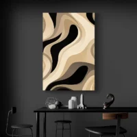 Ce Tableau Abstrait Beige joue sur des nuances de beige clair et sable, avec des zones plus foncées proches du brun. On voit des formes arrondies superposées, des lignes fines noires qui tracent des contours et quelques touches blanches presque transparentes. La surface montre des coups de pinceau visibles, une texture qui capte la lumière selon l’angle. L’ensemble reste sobre, doux et apaisant.