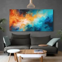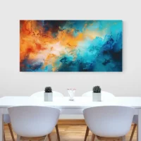 On ressent un contraste chaud-froid qui stimule sans agresser. Ce tableau plaît à ceux qui aiment l’abstraction, la couleur et le mouvement. Il donne de l’énergie au mur tout en gardant une certaine douceur grâce aux nuances bleues. On peut le choisir pour un salon, un bureau ou une entrée, pour créer un point focal qui parle, qui attire l’œil.