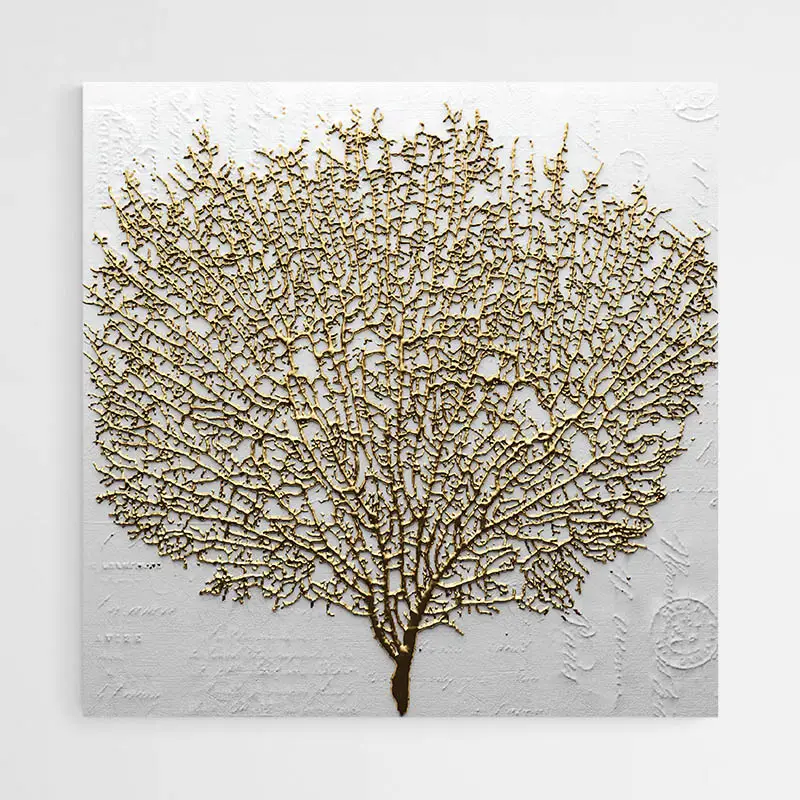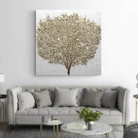 Accrochez cette toile au-dessus d’un canapé neutre ou d’un buffet en bois clair. Sur un mur beige, les dorures se fondent doucement. Sur un mur blanc, elles percent davantage. Associez-la à coussins crème et à petits accessoires noirs pour rappeler les traits. Pour compléter l’ensemble, pensez à nos tableaux abstraits ou à d’autres pièces dans la sélection tableaux modernes.