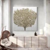 Le tableau joue sur le contraste entre le doré brillant, le blanc chaud et le noir discret. L’ensemble reste sobre, mais il conserve du mouvement. On ressent une ambiance calme et élégante. Il plaira à qui aime les intérieurs épurés, aux amateurs d’objets lumineux, et à qui cherche une déco contemporaine avec du caractère.