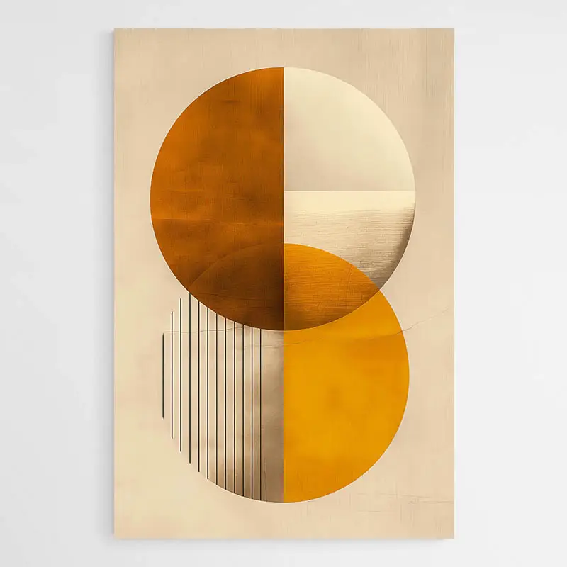 On ressent de l’ordre et de la douceur. Ce tableau conviendra aux amateurs de compositions épurées, aux personnes qui aiment les lignes et la symétrie. L’or apporte de la chaleur sans envahir la pièce. Il fonctionne bien pour un salon, un bureau ou une entrée, quand on veut un point focal discret mais affirmé.