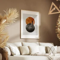 Sur un mur clair, les oranges ressortent très bien. Avec un canapé gris ou des accessoires en bois clair, l’ensemble devient harmonieux. Pour compléter, voir nos sélections de tableaux abstraits ou opter pour un choix plus sobre avec tableaux moderne.