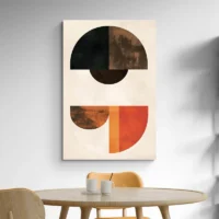 On propose ce tableau aux amateurs d'abstraction et aux personnes qui aiment les contrastes contrôlés. Il dégage une ambiance moderne et chaleureuse à la fois. L'effet recherché : dynamiser un mur tout en gardant une certaine sobriété. Il trouve sa place dans un salon, un bureau ou une entrée qui a besoin d'un point d'appui visuel.