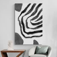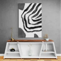 Accroché sur un mur clair, le tableau ressort, sur un mur foncé il crée du caractère. Associer à des cadres fins noirs, à des coussins gris et blancs, ou à une plante verte pour réchauffer. Pour voir d'autres options, découvrez nos tableaux abstraits ou nos tableaux noir et blanc.
