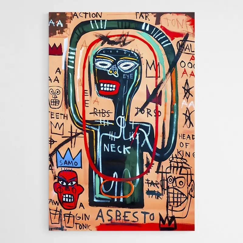 Tableau Africain Basquiat, portrait brut et coloré