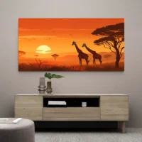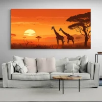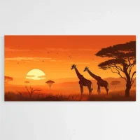 Tableau Africain Girafes, une scène chaleureuse qui raconte le voyage