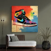 On ressent immédiatement une ambiance urbaine, dynamique. Ce tableau séduira les amateurs de baskets et de culture de rue, ceux qui aiment les pièces qui imposent un caractère. L’effet recherché : créer un point focal fort, apporter du mouvement et réveiller un mur discret. La pièce donne une impression directe, volontaire, presque rythmée.