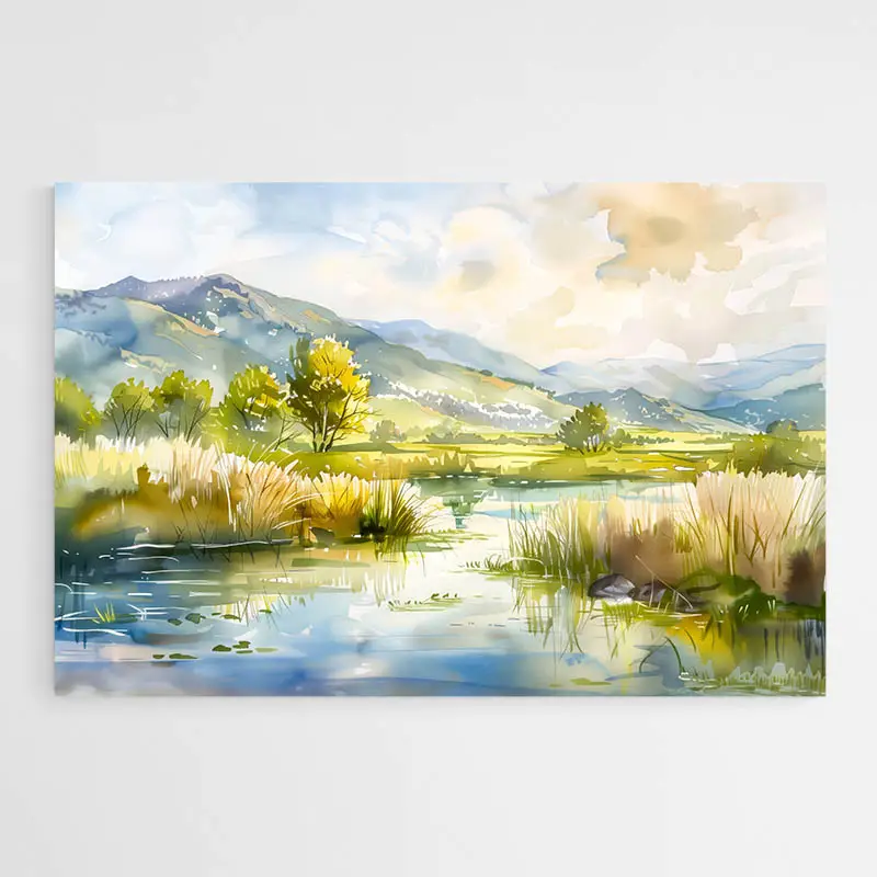 Les couleurs claires et les dégradés doux créent une atmosphère tranquille. Ce tableau conviendra aux personnes qui aiment la nature, la lumière douce et les œuvres discrètes. Il donne une sensation d'espace et de respiration. On sent la main qui a posé chaque lavis, la retenue et la délicatesse.